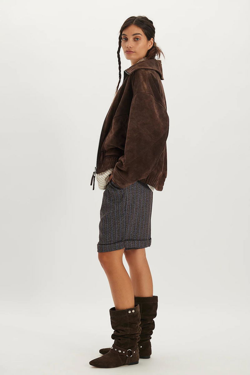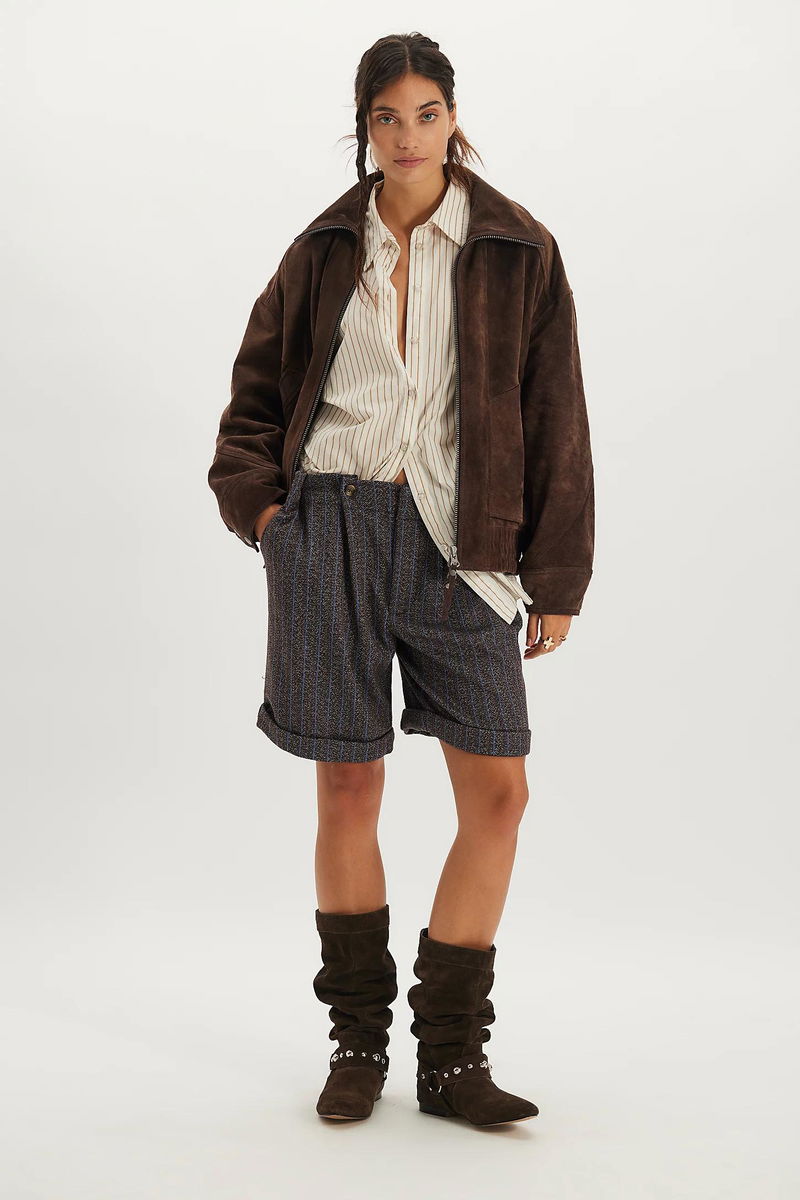 Tailored and textured, these trouser shorts feature a herringbone twill fabrication, pleats down the front, and rolled cuffs for a laid-back, effortlessly chic style.