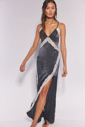 Dramatic details and a romantic silhouette make this midi slip from Intimately the perfect sultry addition to your wardrobe, featuring a soft, velvety fabrication, a plunging V-neck, and sheer lace panels for a sweeping, show-stopping finish.