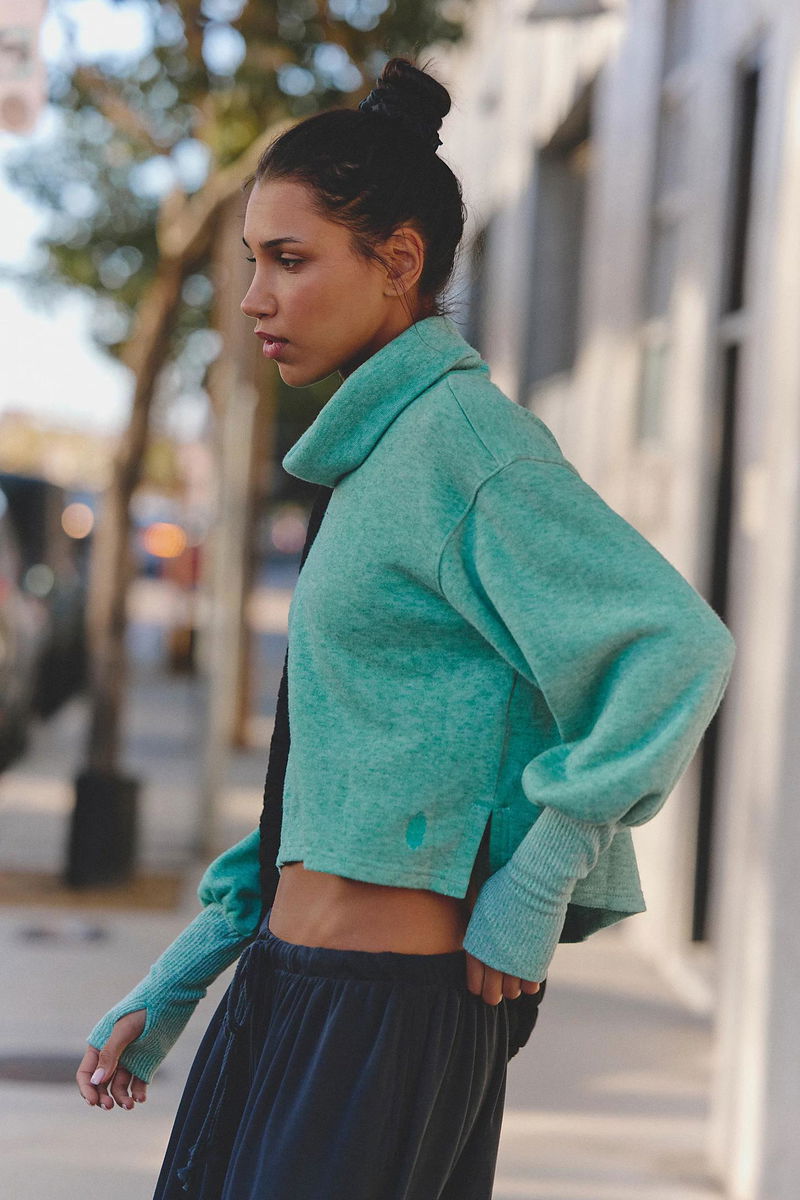 Perfect for off-duty days or layering for light activity, this pullover is cut in a relaxed silhouette and topped with a funnel-style, slouchy mock neck and ultra-long, ribbed sleeve cuffs.