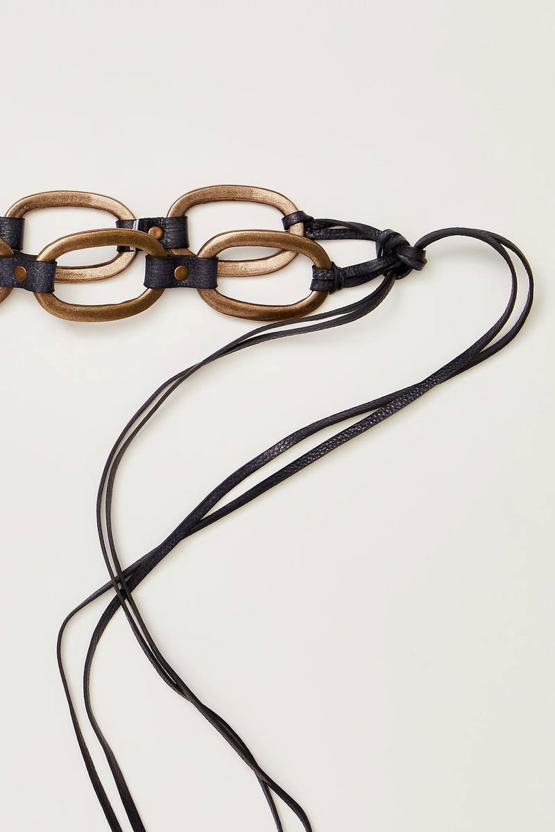 Add effortless edge to every look with this elevated belt featured in a wrap style silhouette with connected metal rings on a luxe leather strap for the perfect dimensional finish.