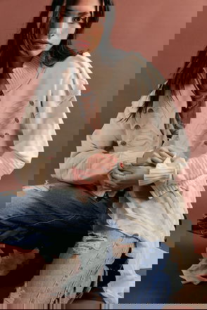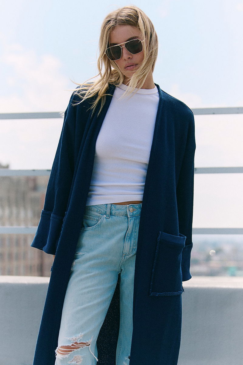 This sweeping cardi from free-est is featured in a maxi-length style with wide sleeves and patch pockets for the perfect cozy layer.