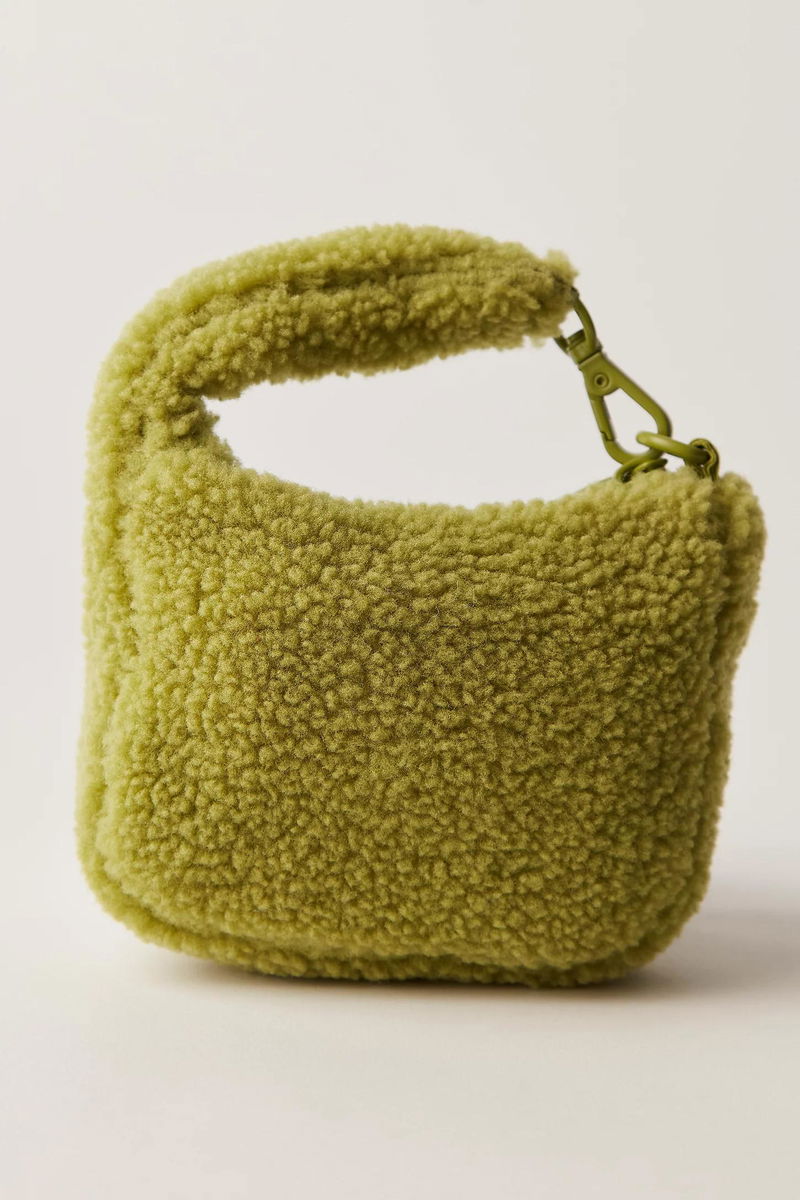 Just as fun as it is functional, this add-to-anything pouch is featured in a soft, sherpa design with lobster-clasp hook, zip-top closure, and bungee-inspired string for an added sporty touch.