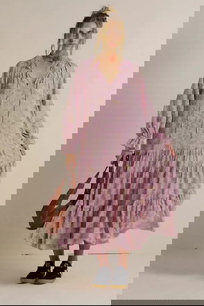 Effortless and absolutely ethereal, this stunning long-sleeve maxi dress from free-est is featured in a breezy cotton fabrication with shirred tie details and cascading ruffles throughout.