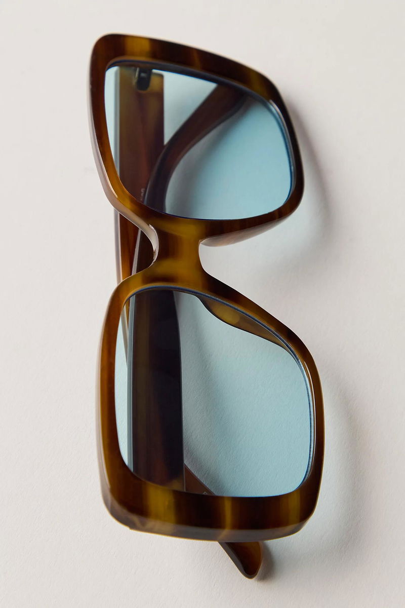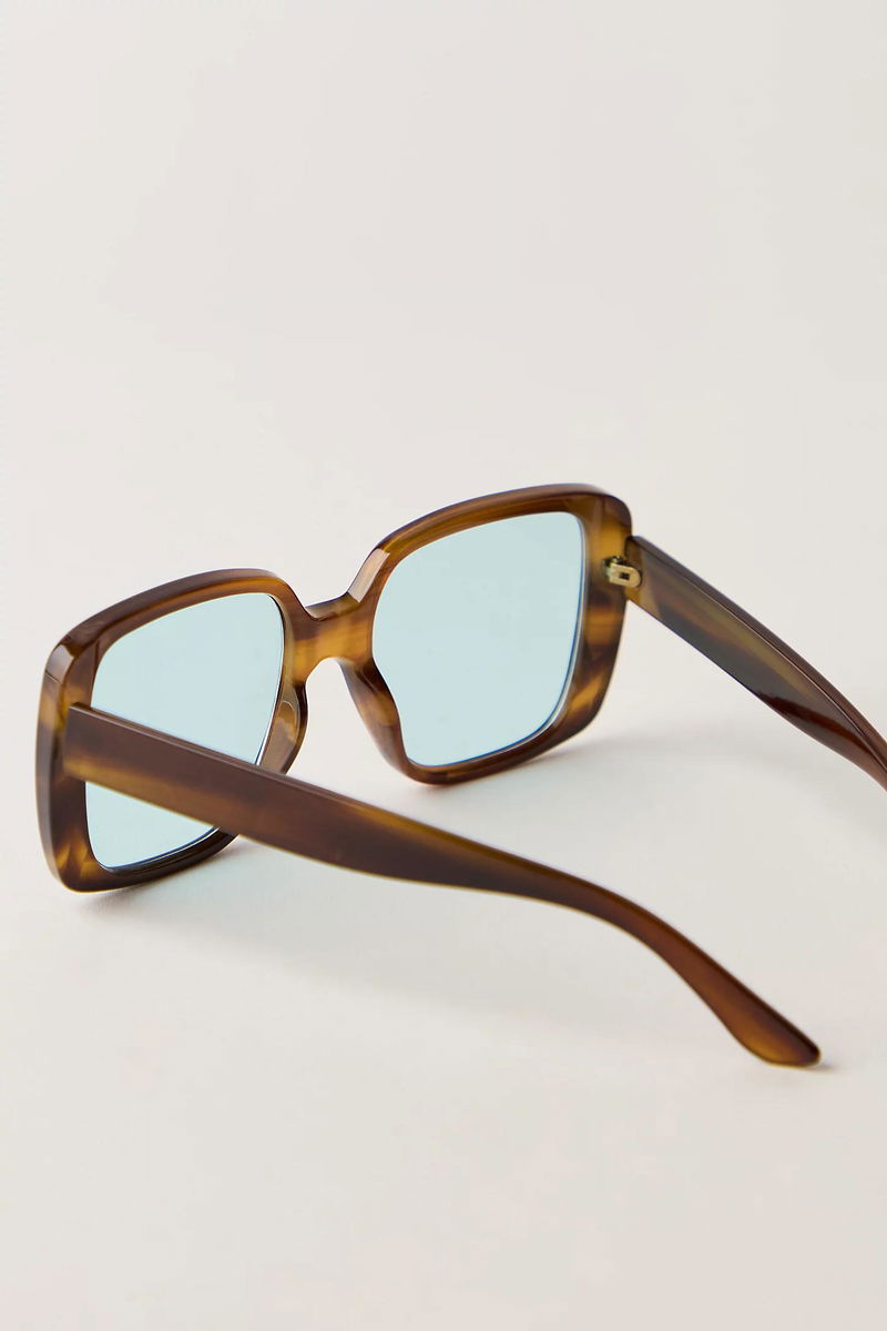 This bold pair of sunglasses features a chunky, square frame that makes an instant statement while staying easy to wear with tinted lenses for the perfect colorful pop.