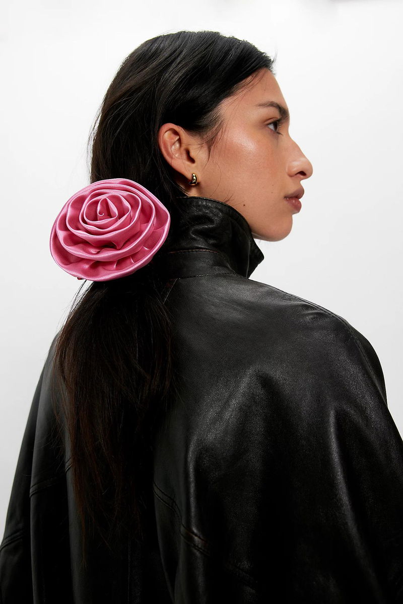 Designed to add a dramatic touch to every style, this stand-out pony is featured in a silky fabrication with a rose-inspired applique to add a femme finish to any 'fit.