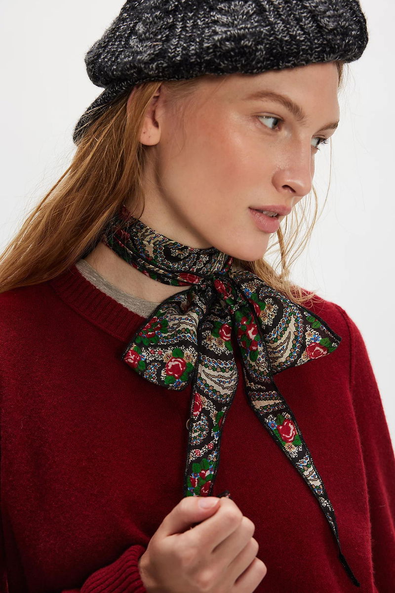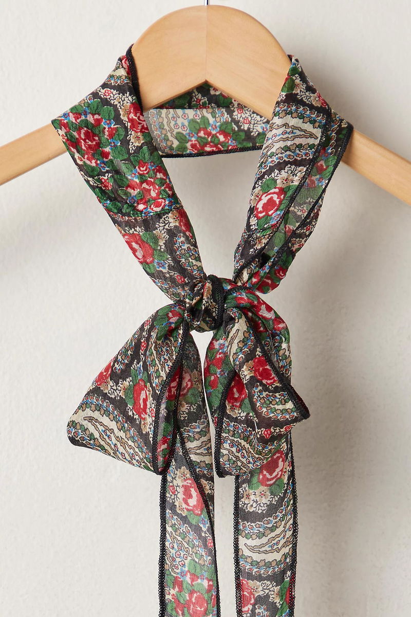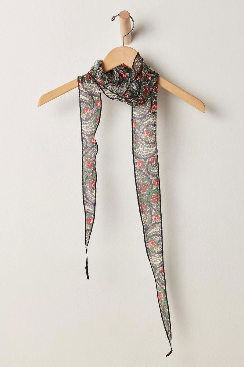 Forever cool, this lightweight floral-patterned skinny scarf can be worn in so many ways—around your neck, head, bags, and more.