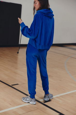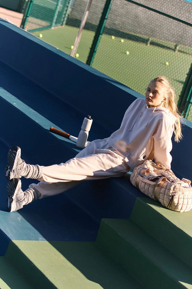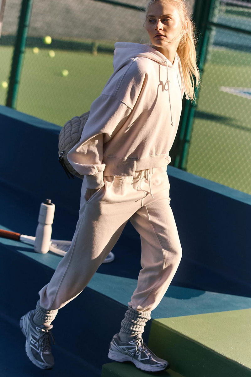 The essential set, now in a sand washed hue. Featuring a slightly cropped, relaxed-fit hoodie top with coordinating high-rise tapered sweatpants for the perfect done-in-one look no matter the activity.