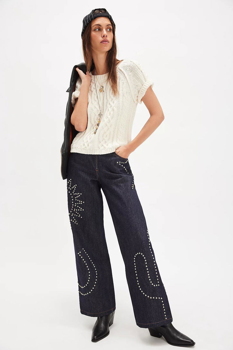 Studded graphic motifs give these wide-leg jeans from Understated Leather that wow-factor.
