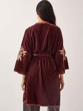 Add the loveliest layer to every look with this so cool kimono featured in a flowy, relaxed fit with sheer fabrication, velvet floral detailing, and defined beading throughout for an added special touch.