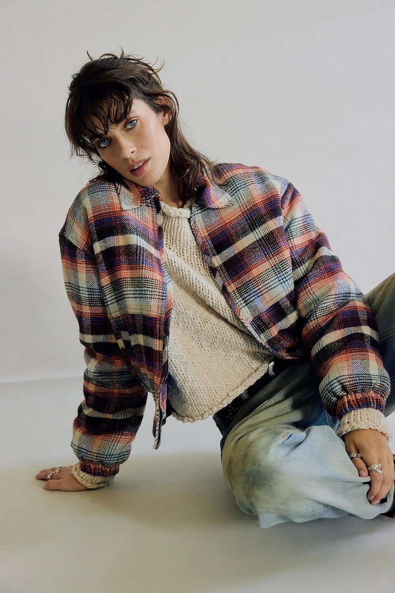 Perfect in plaid, this cozy iteration of our Birdy Track Jacket features a classic bomber-style silhouette with a soft flannel finish for added texture.