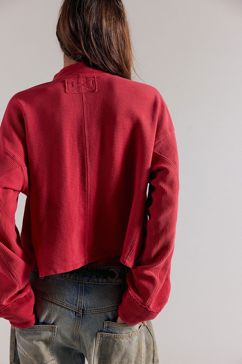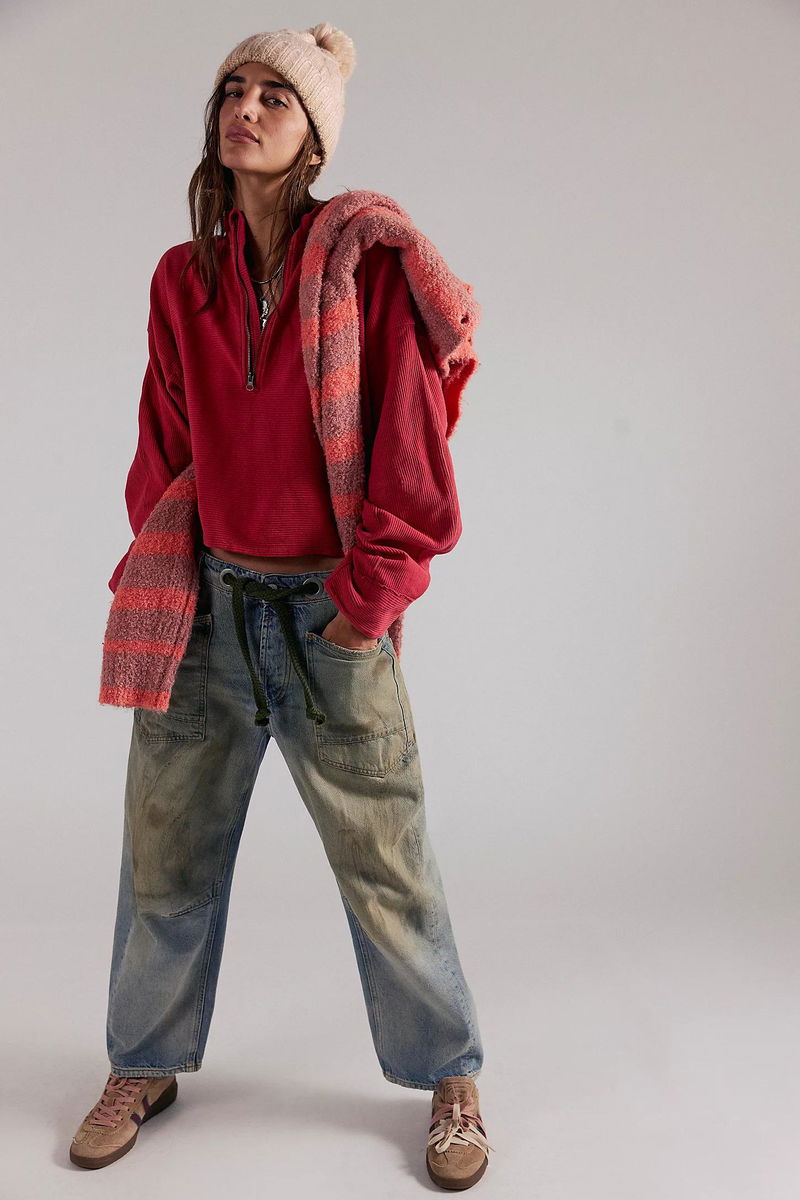 Comfort is key with this effortless pullover from We The Free, featuring a slightly cropped, boxy design, soft cotton fabrication, and a classic quarter-zip silhouette for a layer you’ll reach for again and again.