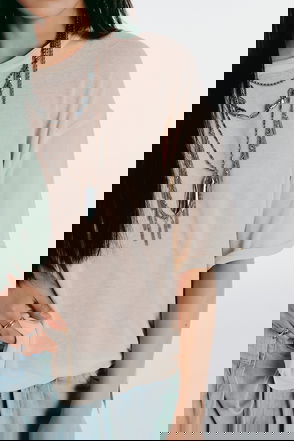 So cool and classic in an oversized, relaxed fit, this timeless tee features wave embroidery throughout with raw seaming, side slits at bottom, and wide sleeves for added shape.