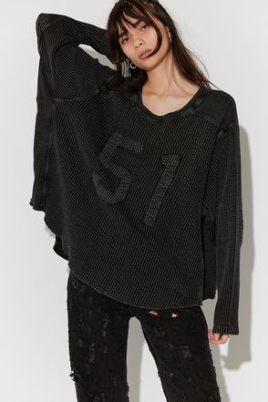 So essential from our We The Free collection, this waffle knit top features soft cotton fabrication, a slouchy, relaxed silhouette, and exaggerated drop shoulders for a go-to comfy staple.