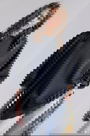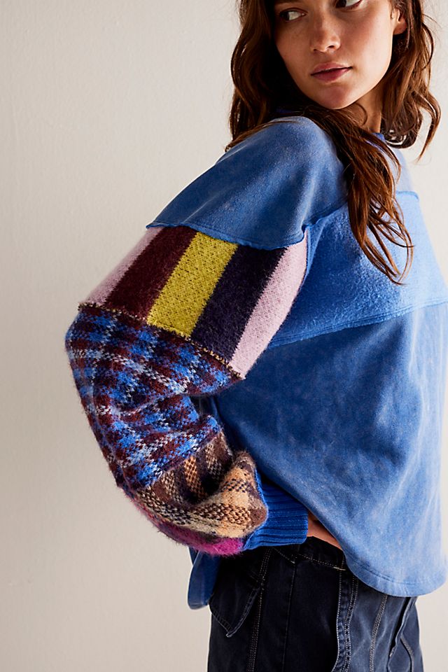 Take your sweaters collection to the next level with this cool and cozy pullover featured in a slouchy, cropped silhouette with pieced patching, rounded bottom hem, and defined seaming for a true lived-in look. Relaxed, cropped silhouette. Scoop neckline, defined seaming, rounded bottom hem. Just as versatile as it is vintage-inspired, this stand-out sweater is perfect to pair with anything from classic denim to a sweet mini skirt.