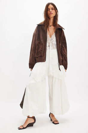 Effortless cool is all yours with this leather jacket from We The Free, featured in the perfect oversized style with a contrasting suede collar for an extra dose of detail. Relaxed, oversized. Leather fabrication, suede collar, zipper closure, patch front pockets, zipper chest pocket, slightly worn finish, snaps at cuffs. An evergreen style you can pair back to anything and keep in your wardrobe for the long haul.