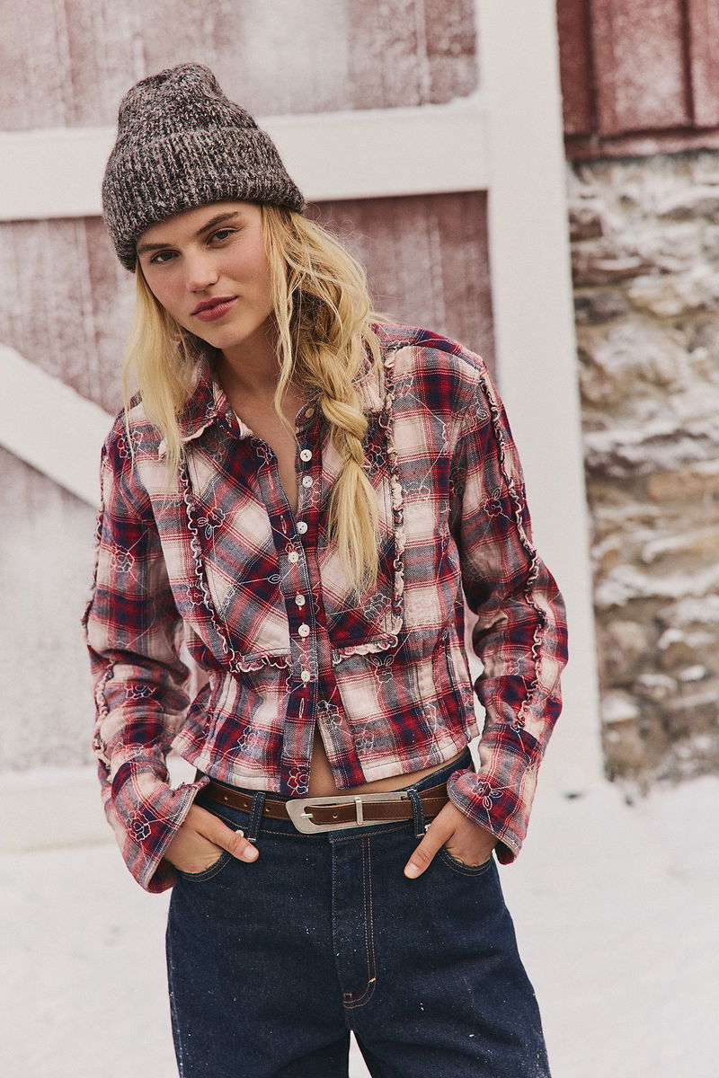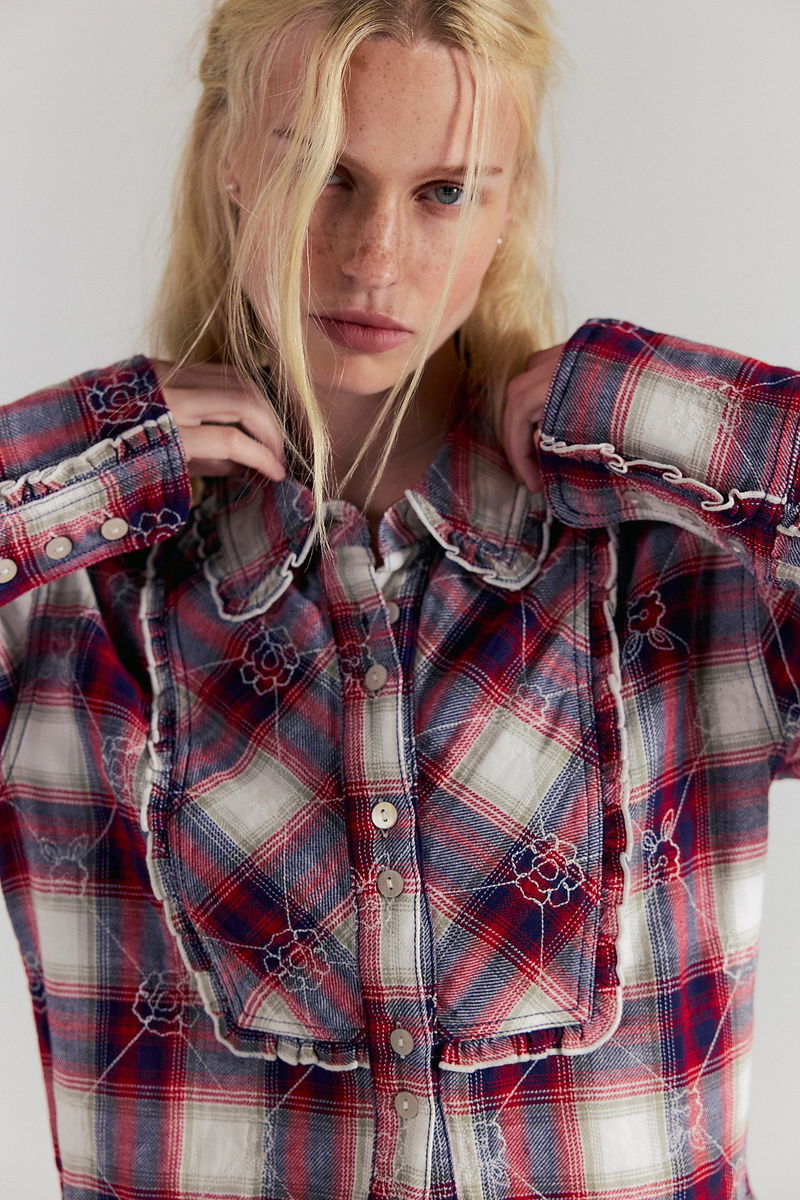 We The Free Georgia Plaid Embroidered Button Down