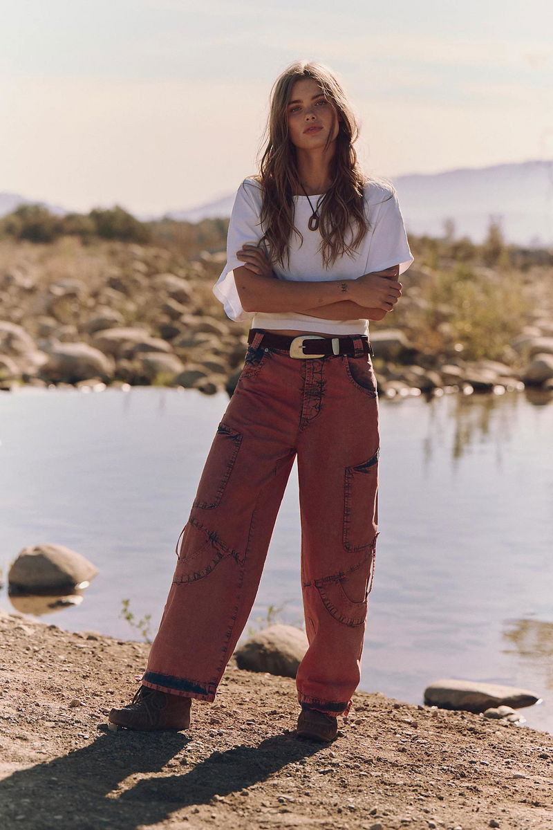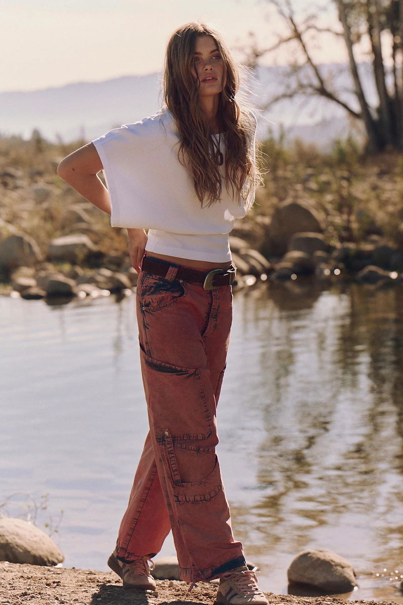 A stand-out in any pant collection, this utility-inspired pair from We The Free is featured in a low-rise, low-slung style with the perfect slouchy fit, cargo pockets, and a bold washed finish.