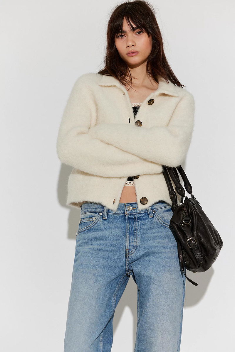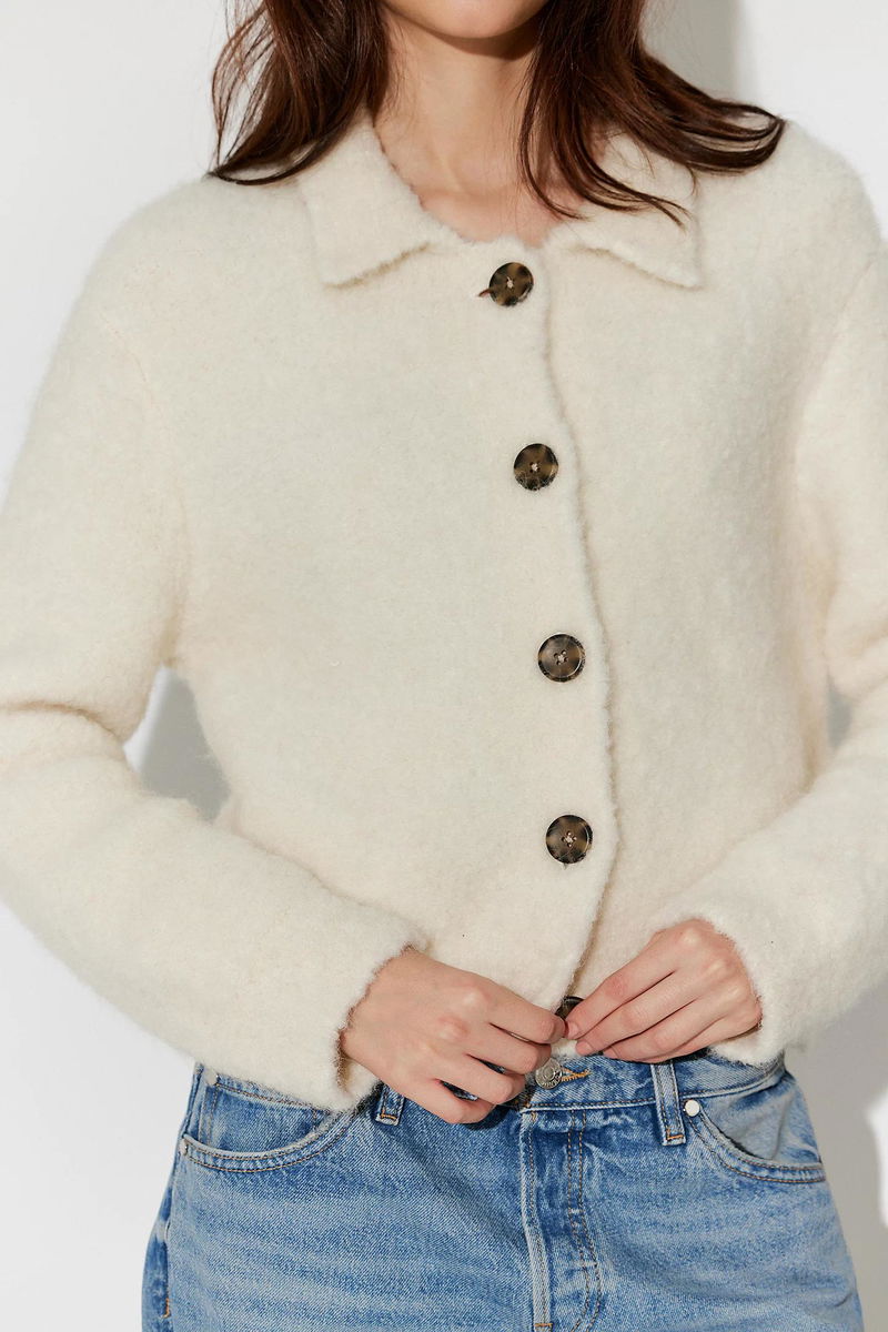 Keep it cozy with this knit cardi from our We The Free collection, featuring a soft wool-blend fabrication, an effortlessly boxy silhouette, and tortoiseshell buttons for a classic touch.