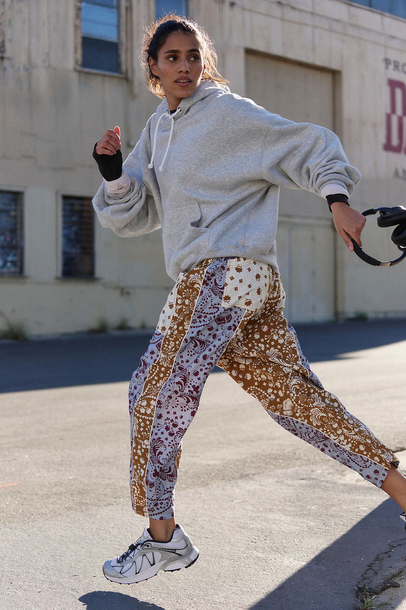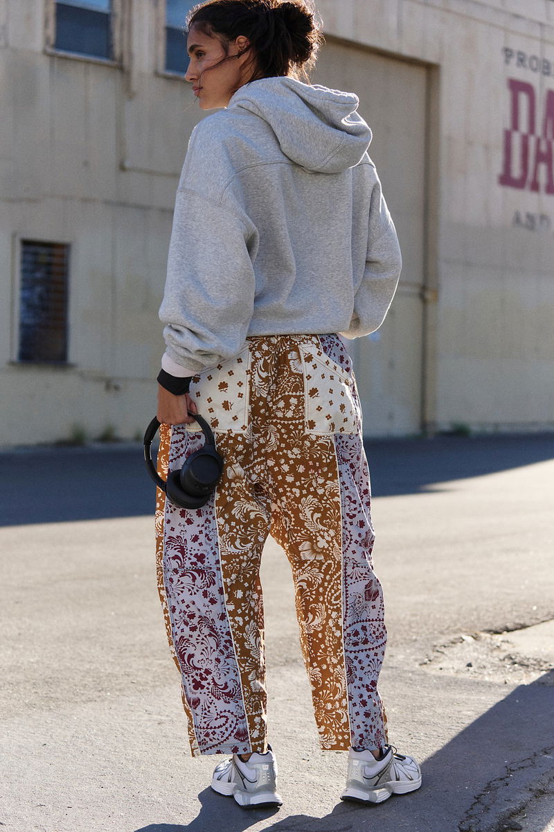 Hike on in these durable, water-resistant pants, featured in a slightly barrel-legged silhouette with a stand-out patchwork print.