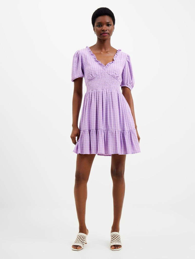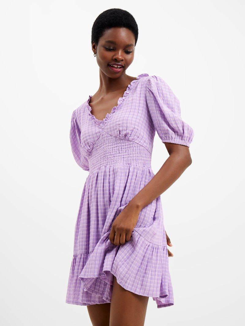We're a sure-fire sucker for French Connections Birch Seersucker Puff Sleeve Gingham Mini Dress this summer. The classic gingham print envelopes this style in sweet pastels ready for the season, whilst its mini length features every detail needed for the best summer yet. From frill trims and a smocked panel empire waist to its seersucker texture and open back, this petite piece ticks off every trend this season. Its sweet silhouette is outlined by a v-neckline and short puff sleeves whilst a tiered skirt completes, making it a perfect dress for every trip from picnics to beach strolls.
