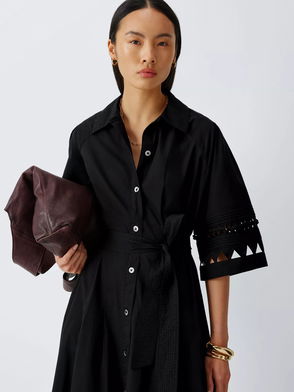 Cut an elegant silhouette in the Clarita Drape Belted Shirt Dress, cinched at the waist with a wide, adjustable belt that creates added fullness to its tiered skirt. Boasting on-trend volume sleeves and a quirky zip fastening, our contemporary take on a classic shirt dress pairs perfectly with ankle boots for the season ahead.