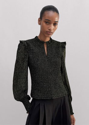 Beautifully lightweight, the Coletta Crinkle Ruffle Sleeve Blouse will lend a touch of feminine flair to any look. Crafted from a sheer, lightweight fabric with delicate ruffle details and subtle volume sleeves. Style with slim jeans and pared-back heels on an evening out.