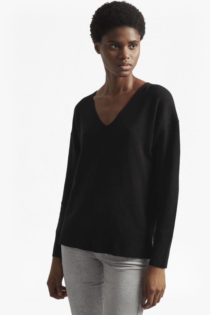 When casual outfits call for a light layer reach for the Della Vhari v-neck jumper. Knitted into a v-neck shape with a soft cotton and wool blend in an array of rich colours, the endless styling options for this staple will make it a key piece in your wardrobe.