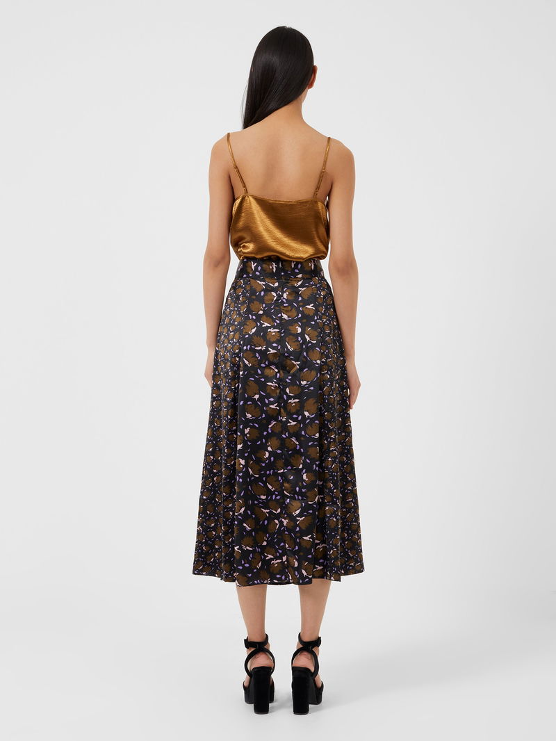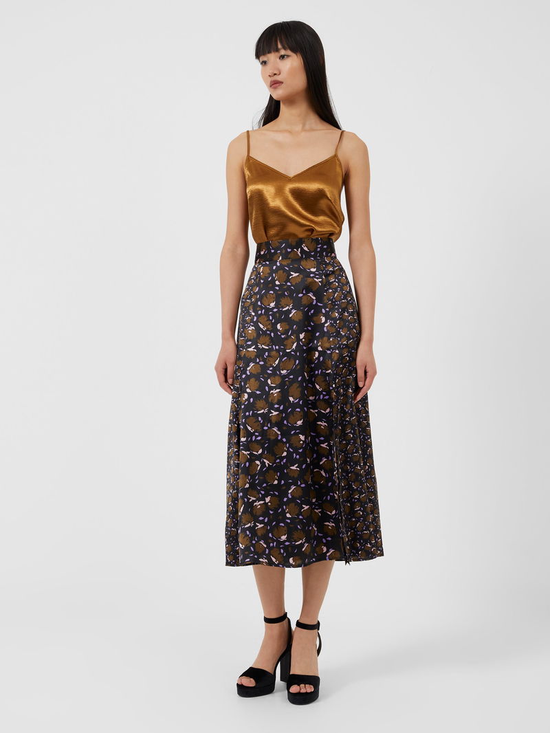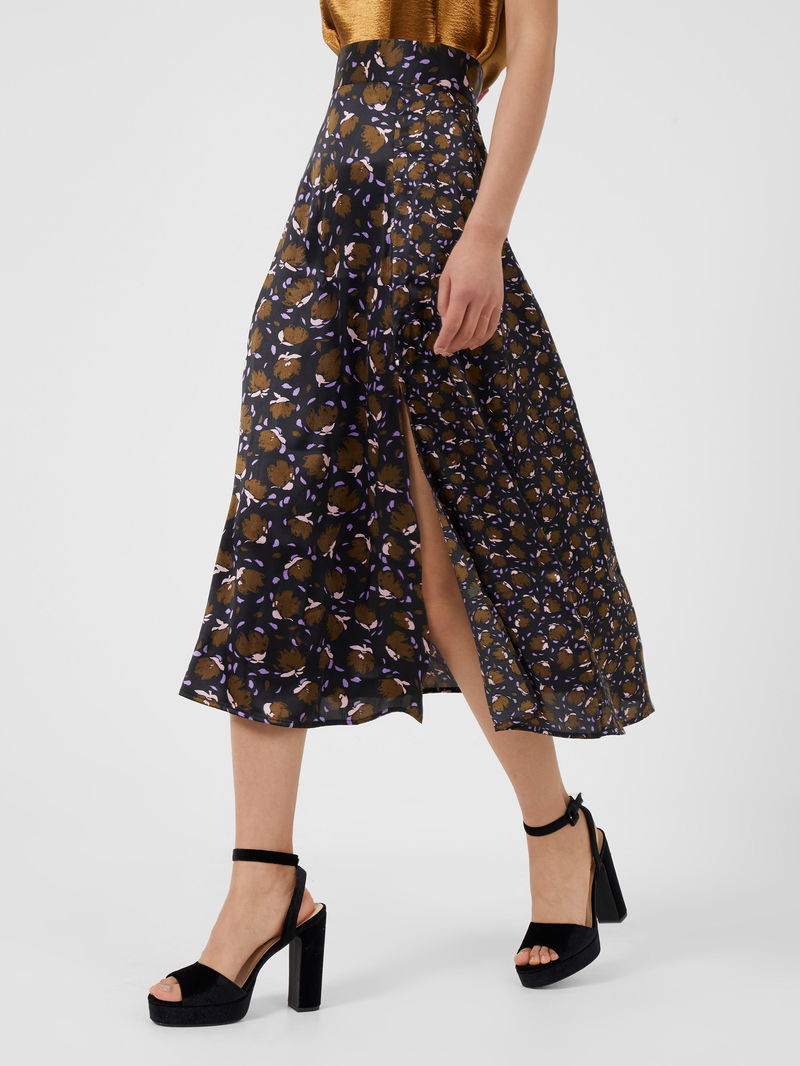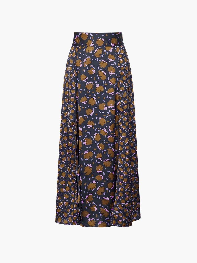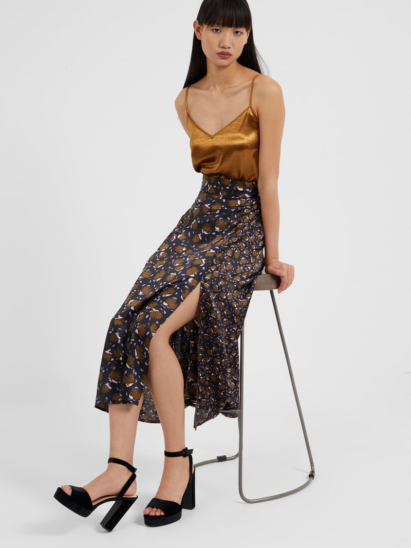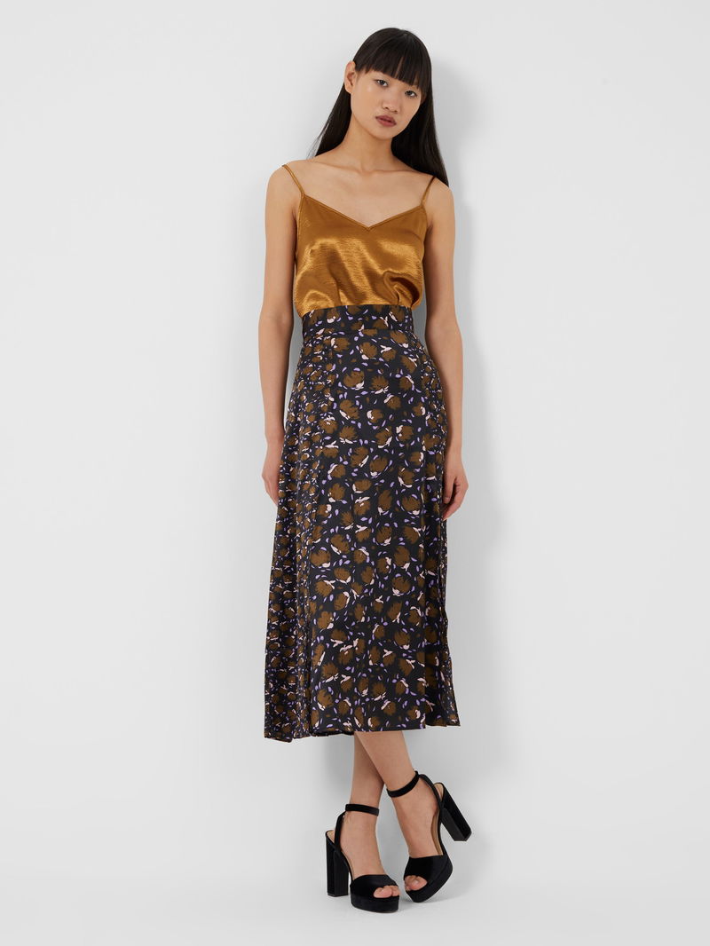 Our Ingrid Inu Satin Drape Side Split Midi Skirt flaunts a flattering silhouette in an attractive abstract print. A playful side split frames this style, which showcases the contemporary print in a smooth satin finish, fastened by a back zip.