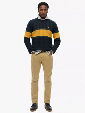 Master cold-weather cosy style in the 2/20s Irregular Stitch Jumper. A crew neck jumper with a sumptuous ribbed texture, the knit is finished with contrasting colour blocking in two different palettes. Finished with an irregular cardigan stitch, the thick jumper has a relaxed, loose fit. Pull on with your favourite denim for easy comfort on off-duty days.