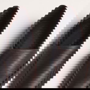 Features: Slip-on style, soft nappa leather, apron toe, unlined, flexible rubber outsole handsewn moc stitching and beefroll