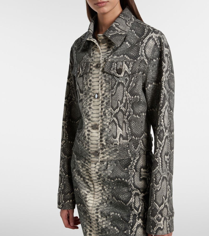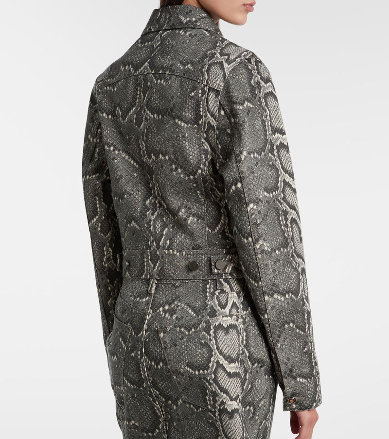 Gabriela Hearst's designs are all carefully constructed, showcasing an uncompromising dedication to quality and craft. The Bronte jacket is crafted from snake-printed denim and features a cropped silhouette with a buttoned front.