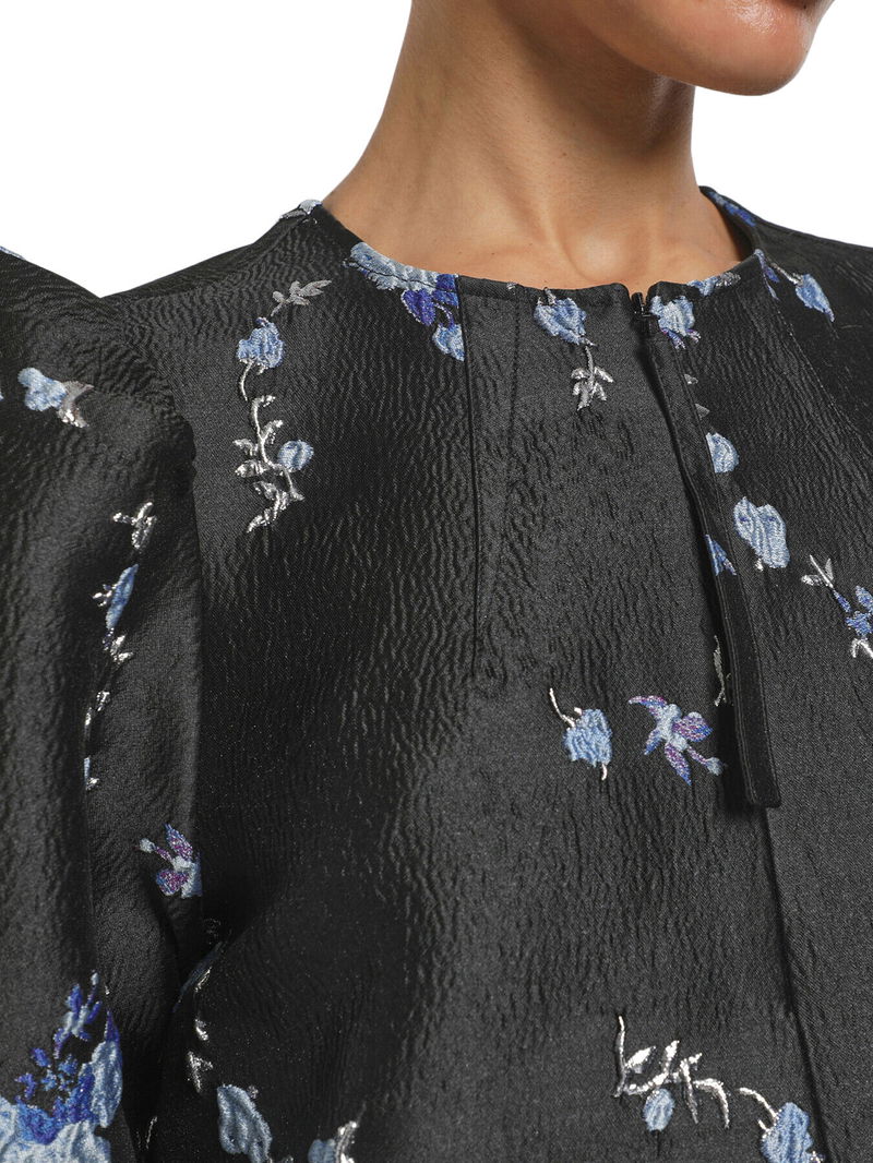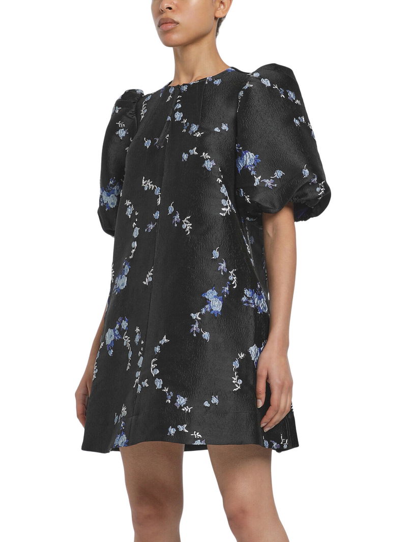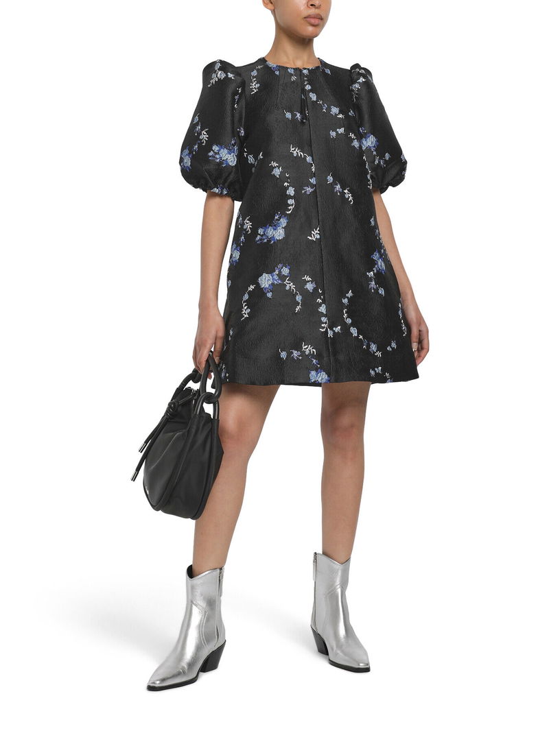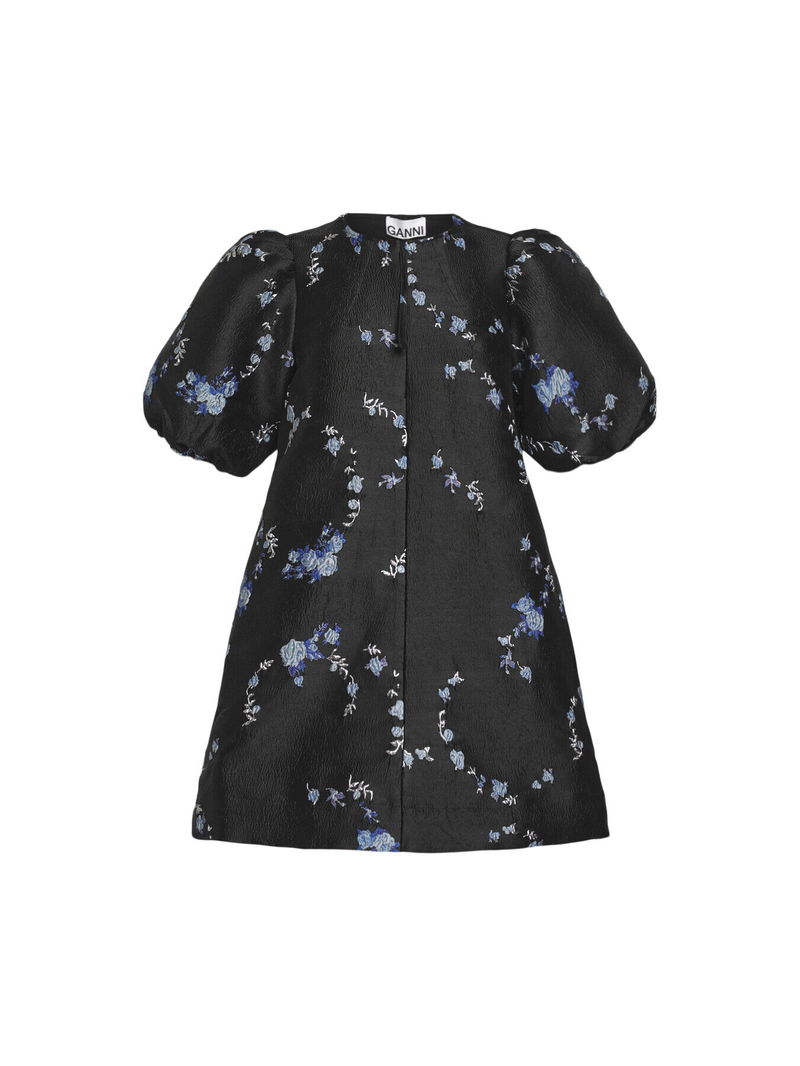 Introducing Ganni's 3D Jacquard A-shaped Zip Mini Dress. Embrace contemporary elegance with this stunning piece. The intricate jacquard fabric adds texture and depth, while the A-shaped silhouette flatters any figure. The front zip detail adds a modern touch, making it perfect for both casual outings and sophisticated evenings. Dress to impress with Ganni.