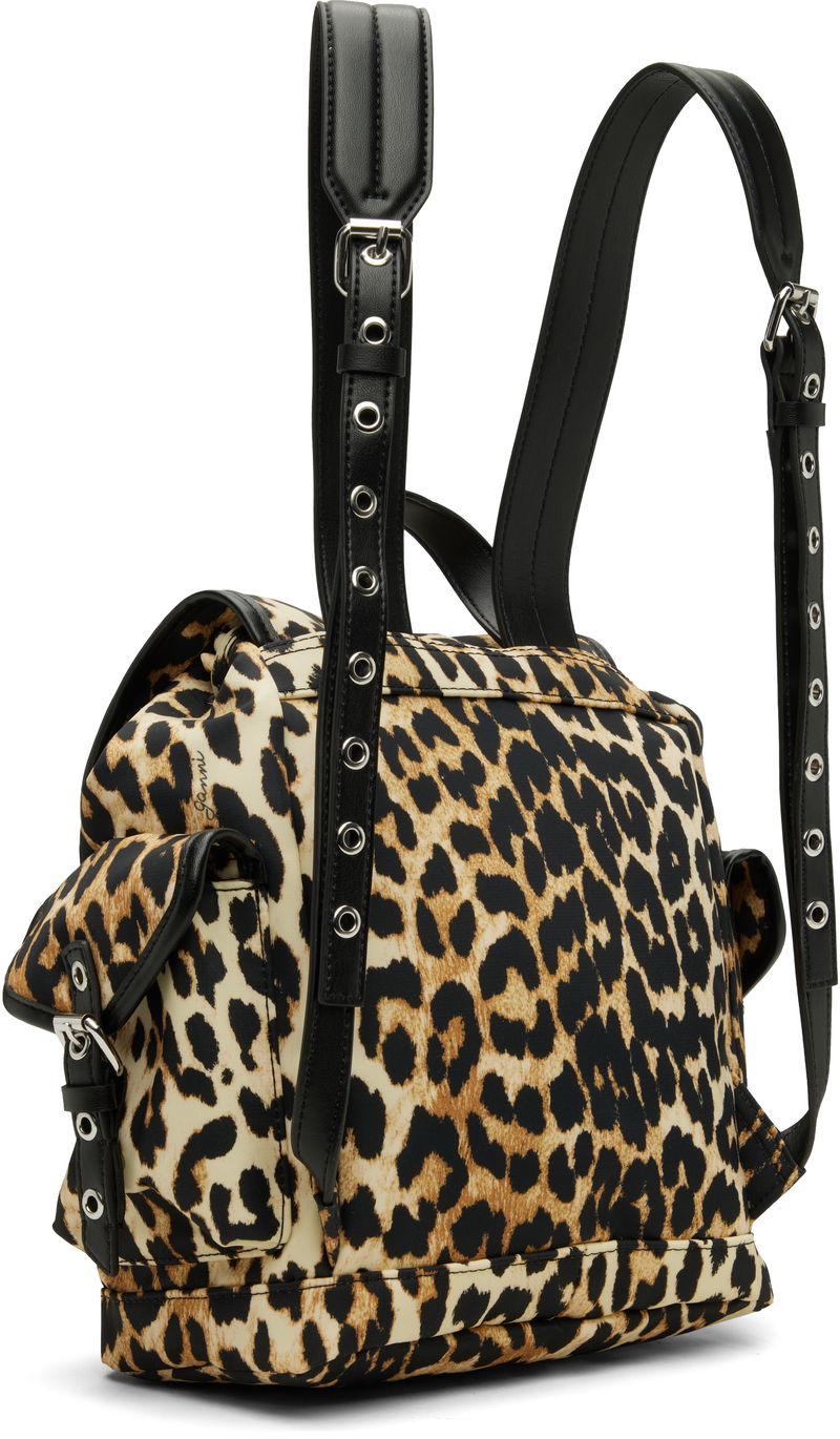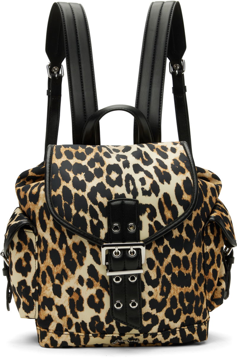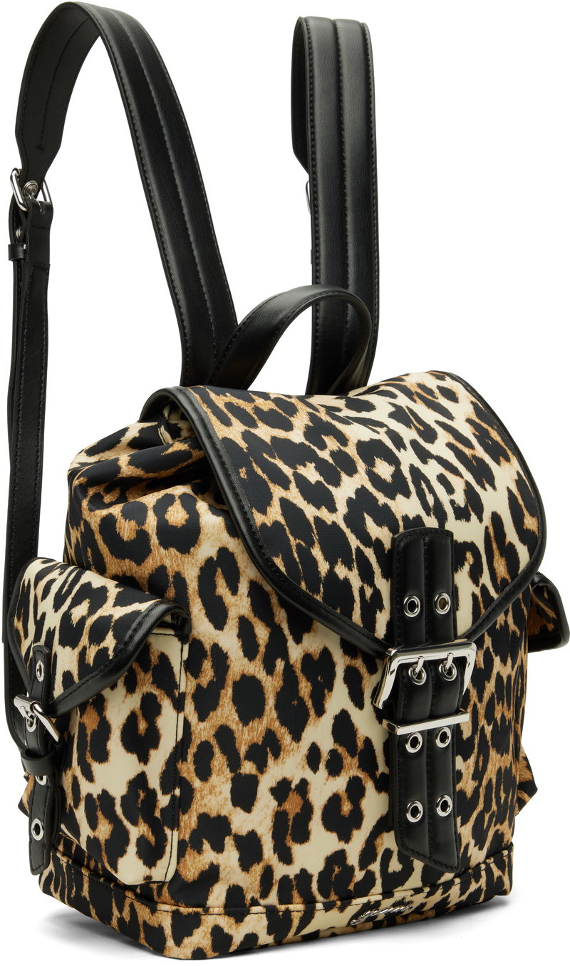 Black & Beige Leopard Small Nylon Bucky Backpack