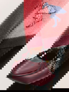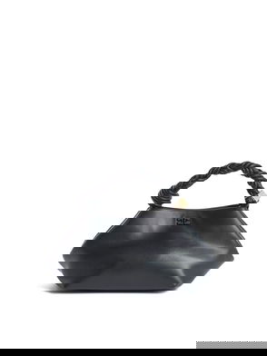 GRS-certified recycled buffed leather-blend shoulder bag in black.· Knotted adjustable crossbody strap· Logo plaque at strap· Logo hardware at face· Logo embossed at back face· Magnetic press-stud closure· Recycled cotton-blend twill lining·