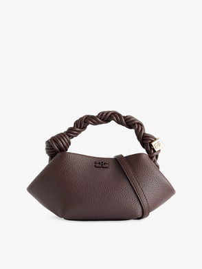 Copenhagen-based brand Ganni reshapes the meaning of Scandinavian style with its whimsy and playful approach to design. The Bou Mini top-handle bag is constructed from leopard-printed cloqué.