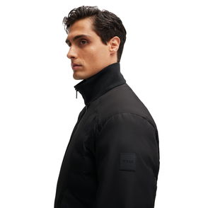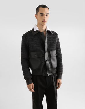 Knit recycled wool-blend bouclé jacket. · Funnel neck· Inset rib-knit stand collar and cuffs· Zip closure with partial toggle placket· Flap pockets· Vented side seams· Dropped shoulders· Zip pocket at interior · Logo-woven satin lining.
