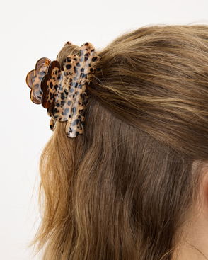 GANNI satin hair clip. Bow design, eyelet embellishments, designer butterfly plaque. Push-clasp fastening.
