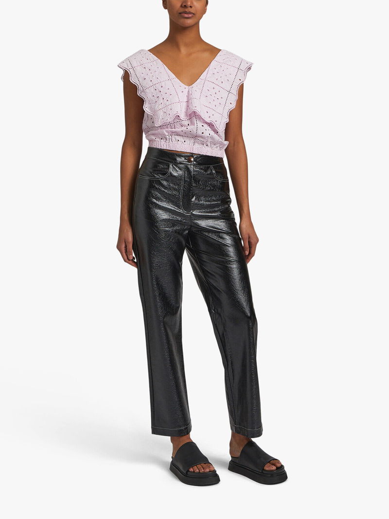 This Broderie Anglaise Rhythm Collar Top is made from certified organic cotton. The top is designed for a regular fit and features a V-neckline, an open back, an elastic waist and a rhythm collar with decorative edges.