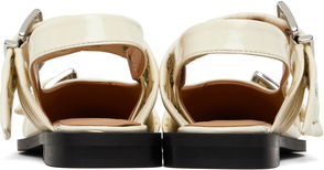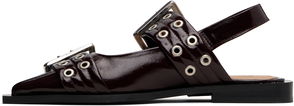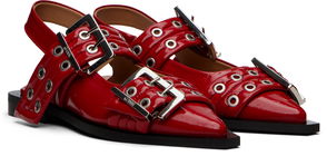 The Buckle Ballerina Flats by Ganni are crafted from polished leather and shaped to a rounded toe. A statement buckle defines the silhouette, balancing structure with softness. Hand-finished details reflect the brand’s modern craftsmanship.