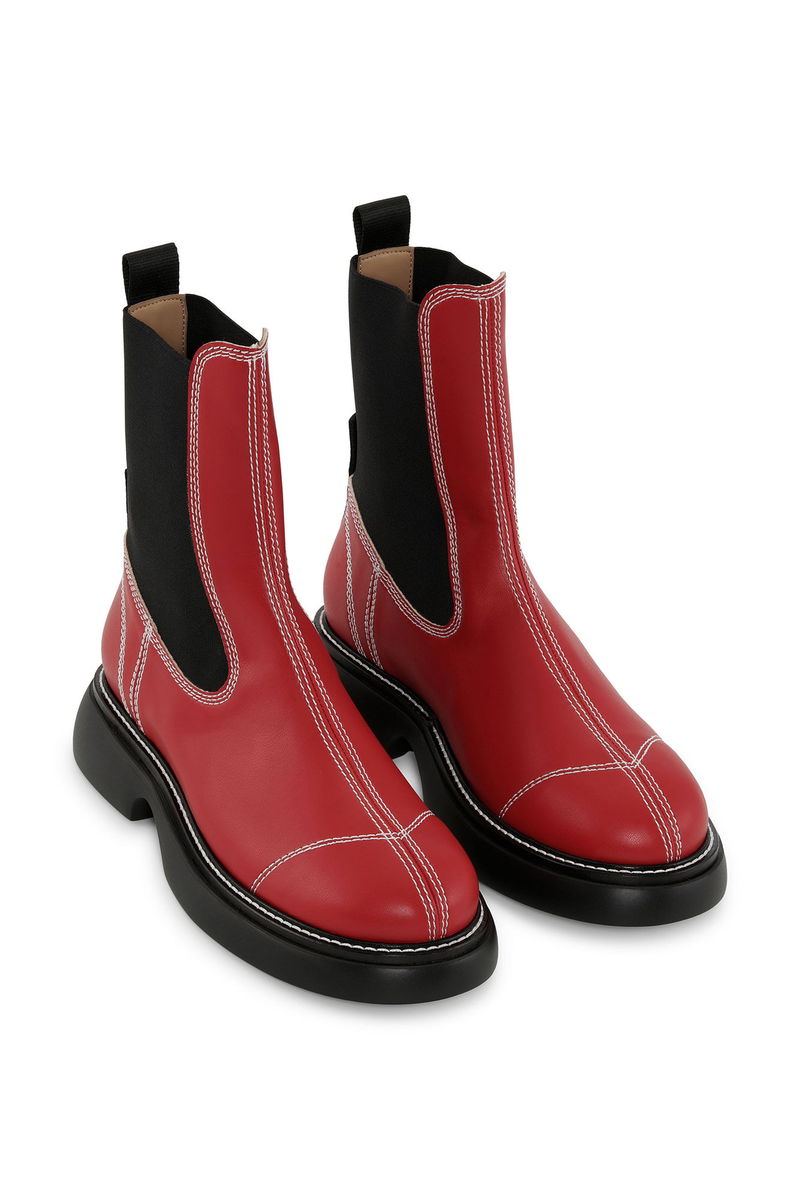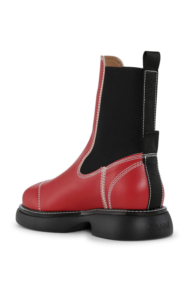 These Burgundy Everyday Mid Chelsea Boots are made from ultra-light materials and feature heavy contrast stitching, pull tabs, elastic panels and subtle GANNI logos.