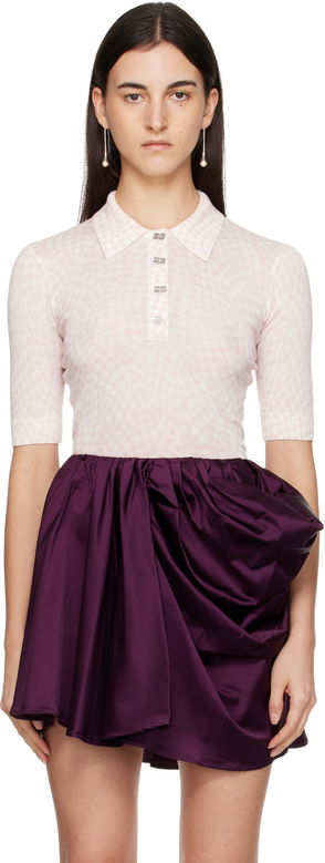 Rib knit merino wool polo.· Spread collar· Four-button placket· Logo embroidered at chest· Vented cuffs · Gold-tone hardware.