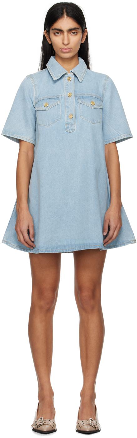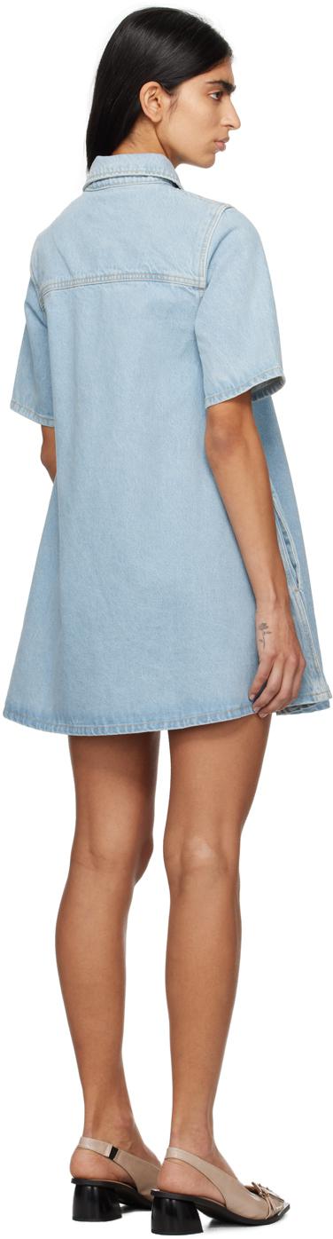 Non-stretch organic cotton denim dress. Fading throughout.· Spread collar· Three-button placket· Flap pockets at chest· Seam pockets· Curved hem· Unlined· Logo-engraved antiqued gold-tone hardware· Contrast stitching in tan.