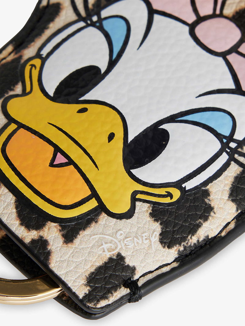 Ganni faux-leather bag charm. Loop at top, logo and floral plaque, Daisy print at front, split ring, all-over leopard print.