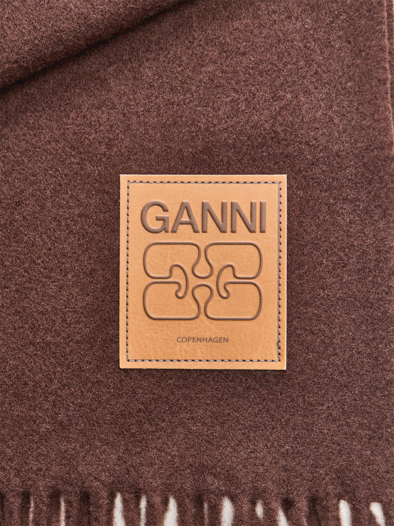 The Double Face Wool Knit Scarf by Ganni offers warmth and softness with a refined, reversible finish.
