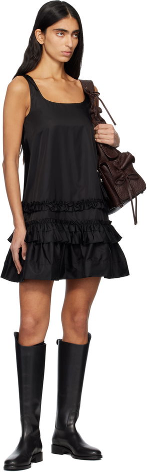 Recycled nylon duchesse satin minidress. · Bow accent at crewneck · Keyhole and darts at chest· Central seam at front and back· Logo patch at hem· Concealed zip closure at back· Unlined.