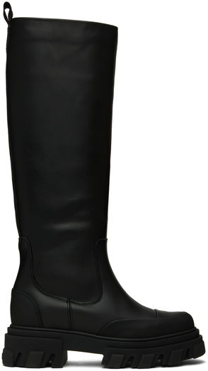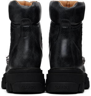 The Eyelet Slouchy Boots by Ganni are crafted from smooth leather with a relaxed shaft and bold hardware. A chunky sole grounds the silhouette, creating a confident take on utilitarian footwear with a refined edge. Made in Portugal for a durable finish.