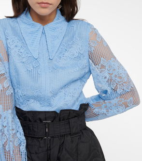 Rib knit stretch rayon and nylon-blend blouse. Jacquard graphic pattern. · Scoop neck· Ruffled edge at hem and cuffs.
