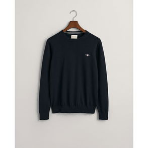 Knit wool- and recycled wool-blend sweater. · Rib knit crewneck, hem, and cuffs· Intarsia logo graphic and text at front.