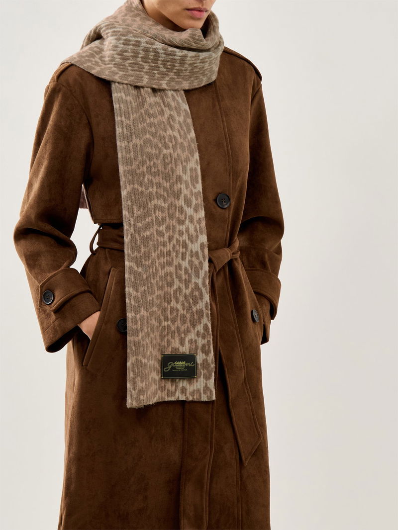 Graphic Wool Knit Scarf Leopard