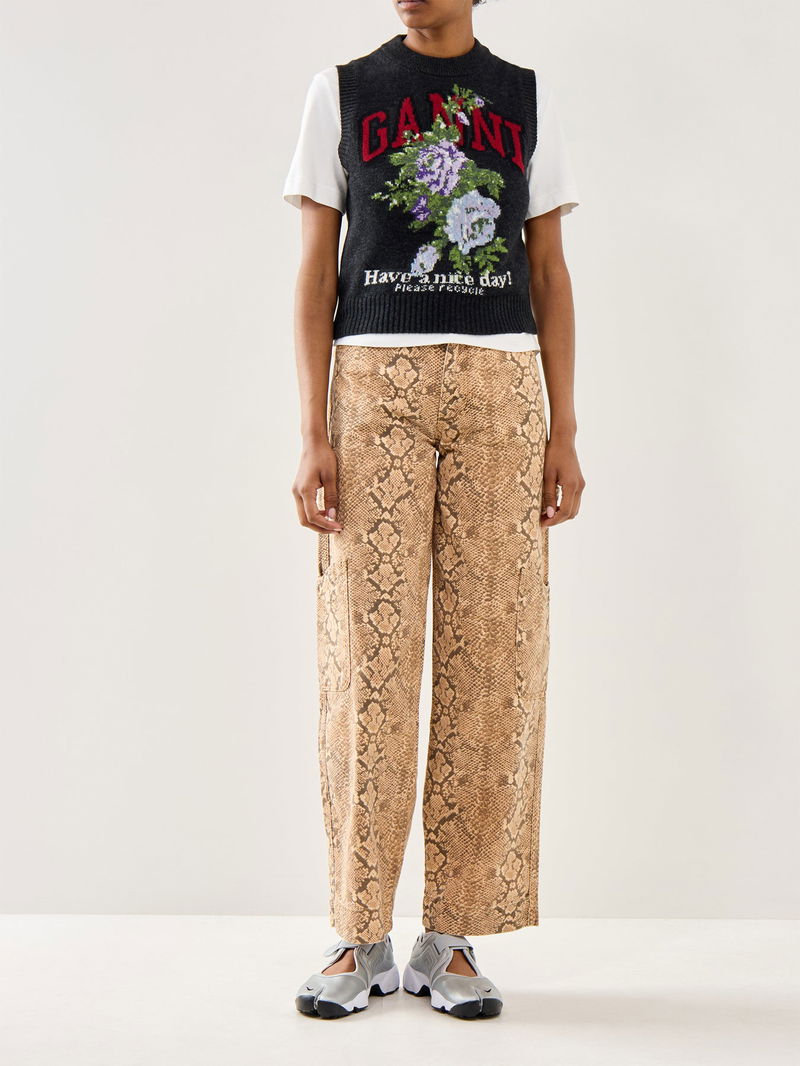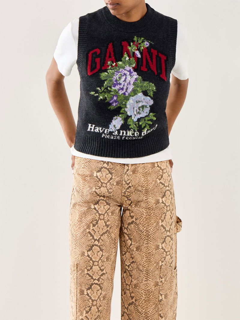 This Graphic Wool Mix Flowers Vest combines warmth and style with its soft wool blend fabric.